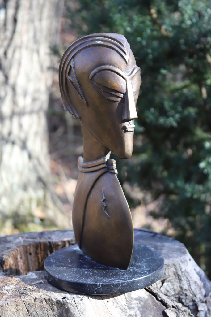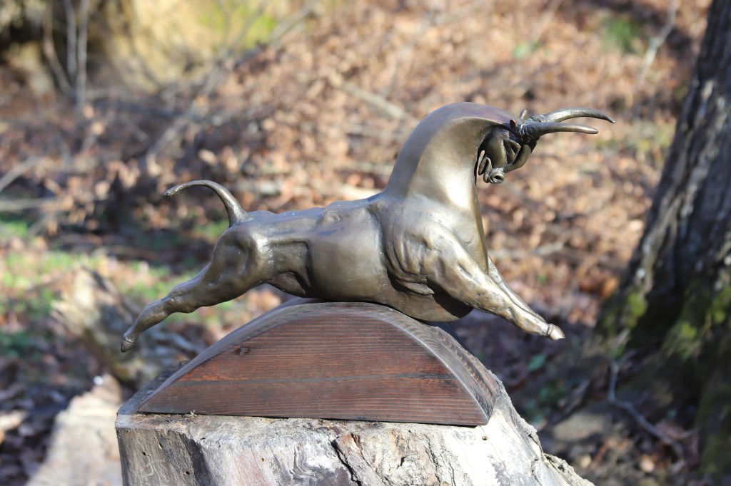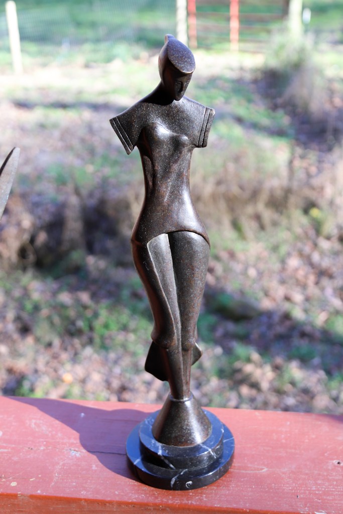His largest sculpture, “Totem,” weighing over 120 pounds, is also a fantasy that was inspired by Inuit carvings and totem poles. Other influences on Cox’s work include Cubism, Art Deco and the S-shaped curve of design. His sculpture “Bull,” for example, he said “is an exercise in Art Deco stylization.”