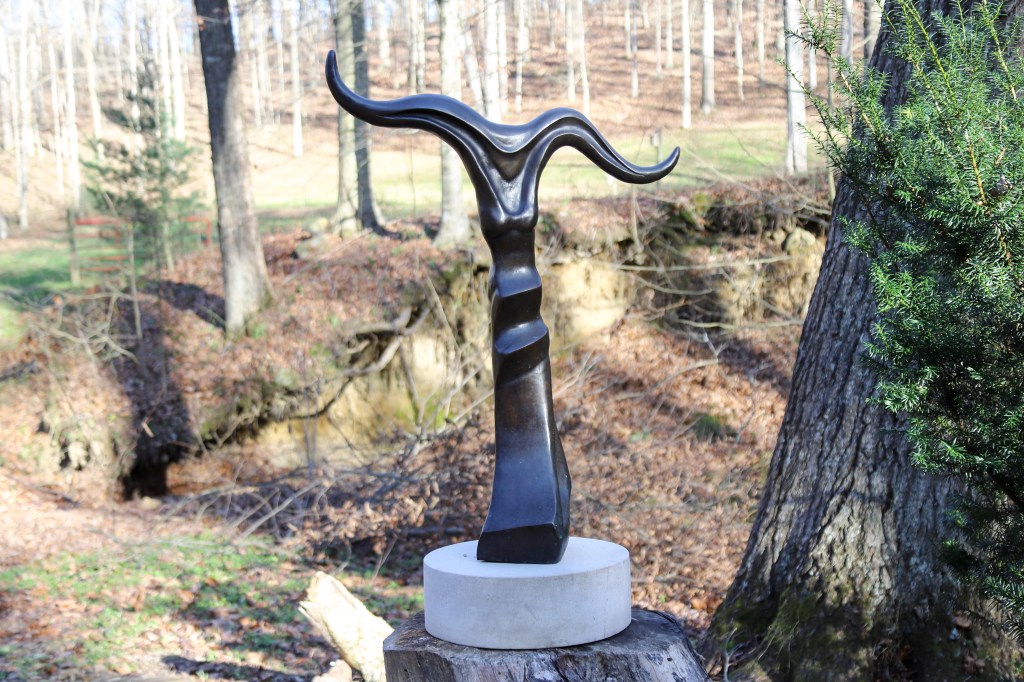 “My work has its own rhythm,” Cox said to describe how he works. “I don’t follow a schedule. I moved here 20 years ago to get away from all that scramble and noise.” Before moving here, Cox had traveled the U.S. in search of technical knowledge; over the years, he supervised numerous employees, and was the first to open a gallery/studio/foundry in Fountain Square in downtown Indianapolis where he worked for 30 years. But he is more himself here: “I love the quiet, the solitude, the freedom and being close to nature,” he said.