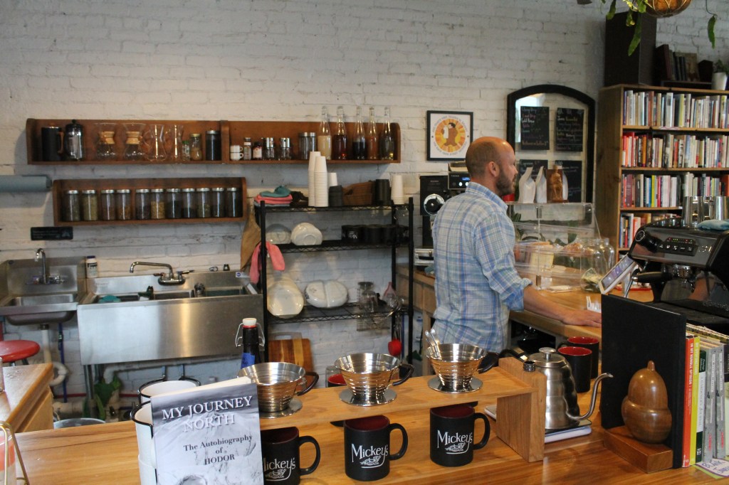 If you ever went to McQuixote’s in Louisville, you will recognize Mickey. McQuixote’s recently closed and he has now opened residence in New Albany with the aptly named Mickey’s Coffee Shop. The special thing about Mickey’s is, like its predecessor, it’s a used bookstore as well. You’ll find walls of bookshelves with works from authors across all genres. I have found some of my favorite Neil Gaiman books there as well as a couple literary classics for low prices.