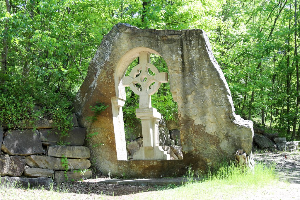 Carved within a 20’ x 22’ x 4’ sandstone boulder natural to the hillside, this artwork is believed to be the largest “in situ” Celtic cross in the world.