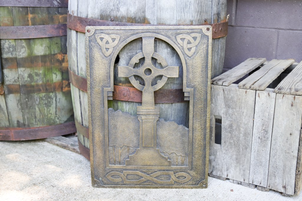 “I spent a lot of time making horse troughs. I always work from models or drawings, or sometimes both,” Harris said to describe his practice. He also read stacks of books on Celtic crosses from various disciplines. The design on one side of the cross, carefully researched, “is a Celtic symbol of the struggle of life,” Harris said.