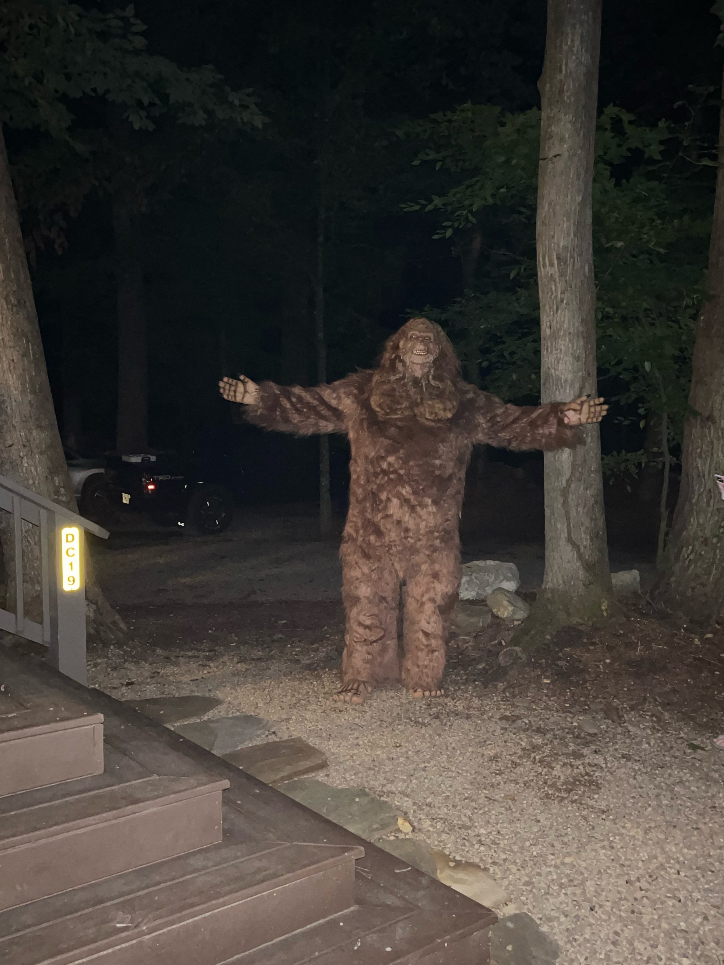 When she turned around, she expected to see her clean-shaven husband, but instead found herself staring at a mass of fur and fangs. She and my daughters were face-to-face with a real live sasquatch! Or at least a guy in a scary bigfoot costume, which in some ways, is more disturbing.