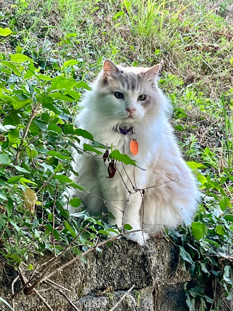 I ran out onto the patio and yelled, “Fluff, get back here,” which, of course, was dumb because that cat has never once come when I called him. Why did I think he would start now?