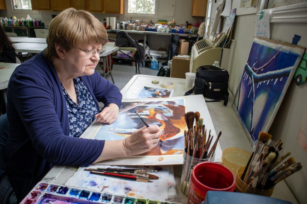 The classroom space at AASI appeals to Hillegas, who often paints there after class.