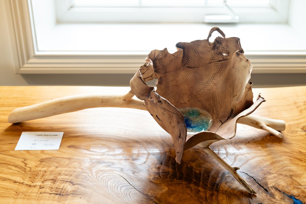Local artist, Kevin Darst, a native of Louisville, Kentucky, moved to Southern Indiana in 1995. He began his study of ceramics in the late seventies at Western Kentucky University and later at the Univeristy of Louisville under Tom March. He had a fulfilling career in graphic design for the next 30 years and taught clay sculpture and wood carving at the Waldorf School. Upon semi-retirement Kevin rebuilt his kiln, and began creating clay forms, wood sculptures and tables. His creative energy is spent at a cabin in the woods and a studio at Mount Saint Francis.•