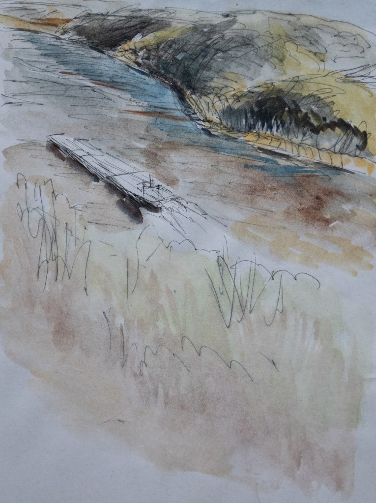 “I moved here more than 30 years ago to enjoy the picturesque landscape with its views of woods, streams and wildlife,” the artist said. Chapman, now 97 years old, holds a wellspring of memories about the land formations of this area that she has painted.